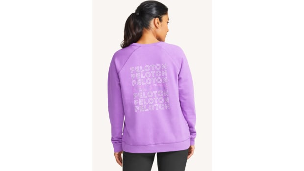 Whether you’re lounging around the house, going for a more casual fit to the office, or working out on a chilly day, this crewneck pullover allows you to do it with flair. It comes in a bold purple color with a rainbow Peloton logo on the front and the brand name in rapid repeat on the back.