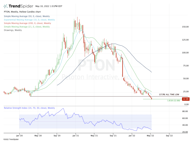 If a rebound is brewing, a move back to the prior all-time low at $17.70 could be in the cards. Near there, Peloton stock may very well test the 10-week moving average as well.