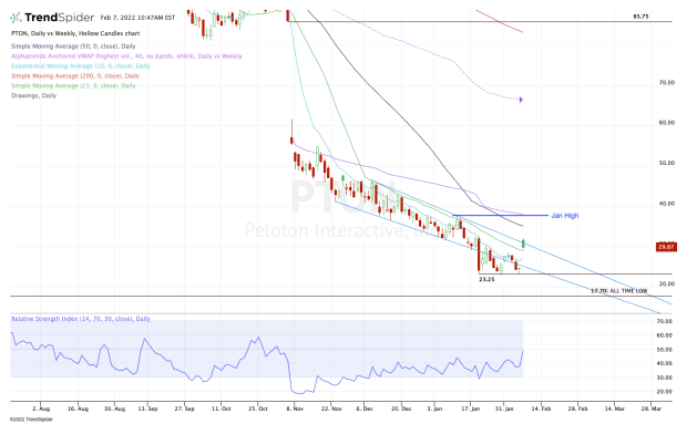 Because of Peloton stock’s massive decline over the last few months, I had to really zoom into the current downtrend.
