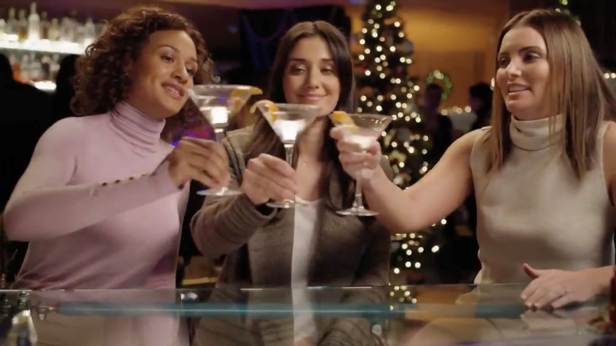 In the new gin ad, three women are out for a holiday drink. "You are safe here," one friend tells Ruiz. The trio toast to new beginnings and the ad ends with a voice saying, "you look great by the way."