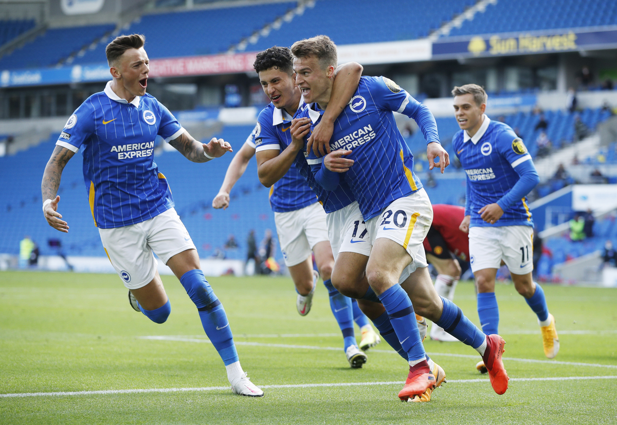 Brighton took a deserved lead when Maupay coolly slotted in a penalty in the 40th minute after a foul by Fernandes, but the visitors soon levelled with an own goal from Brighton defender Lewis Dunk.