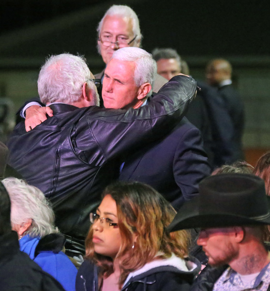 Pence and his wife, Karen, arrived Wednesday to console victims' families and greet the two bystanders who shot the gunman and chased him out of the small town outside San Antonio, and who Pence said "undoubtedly saved lives."