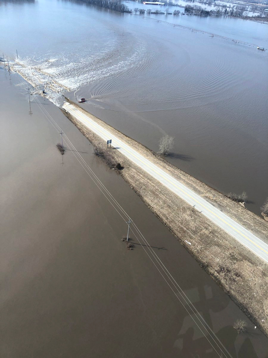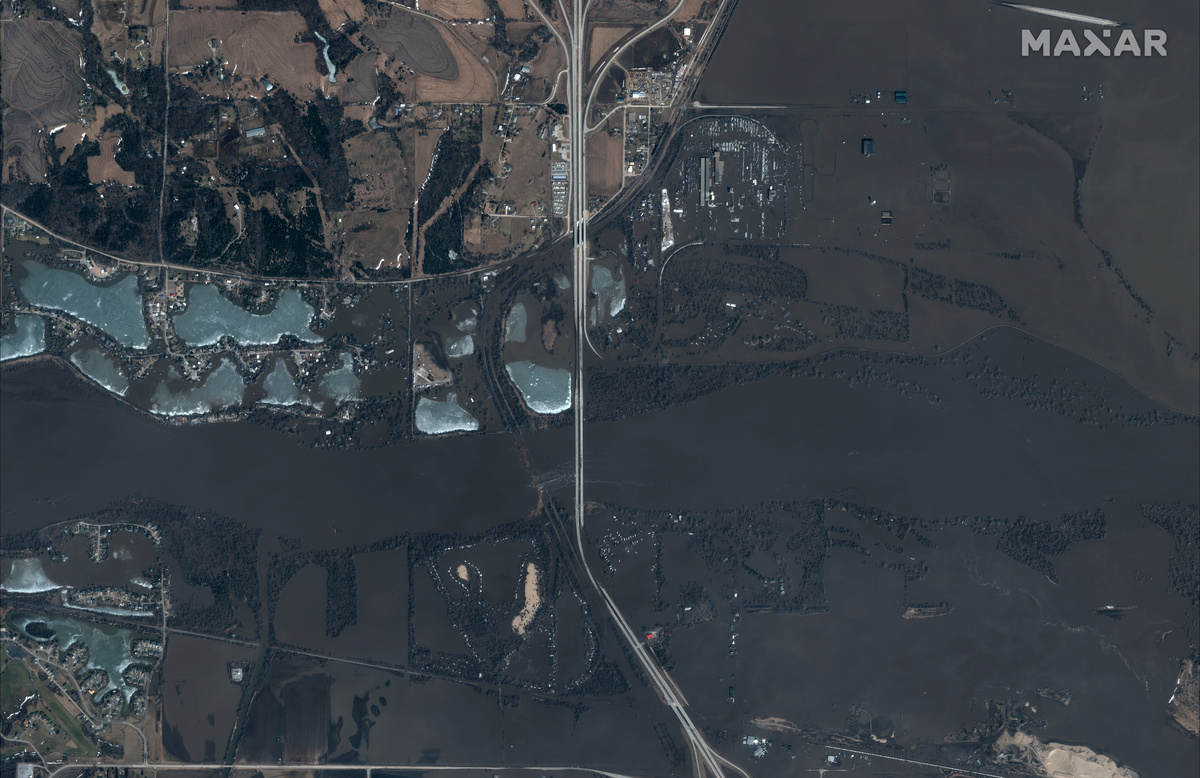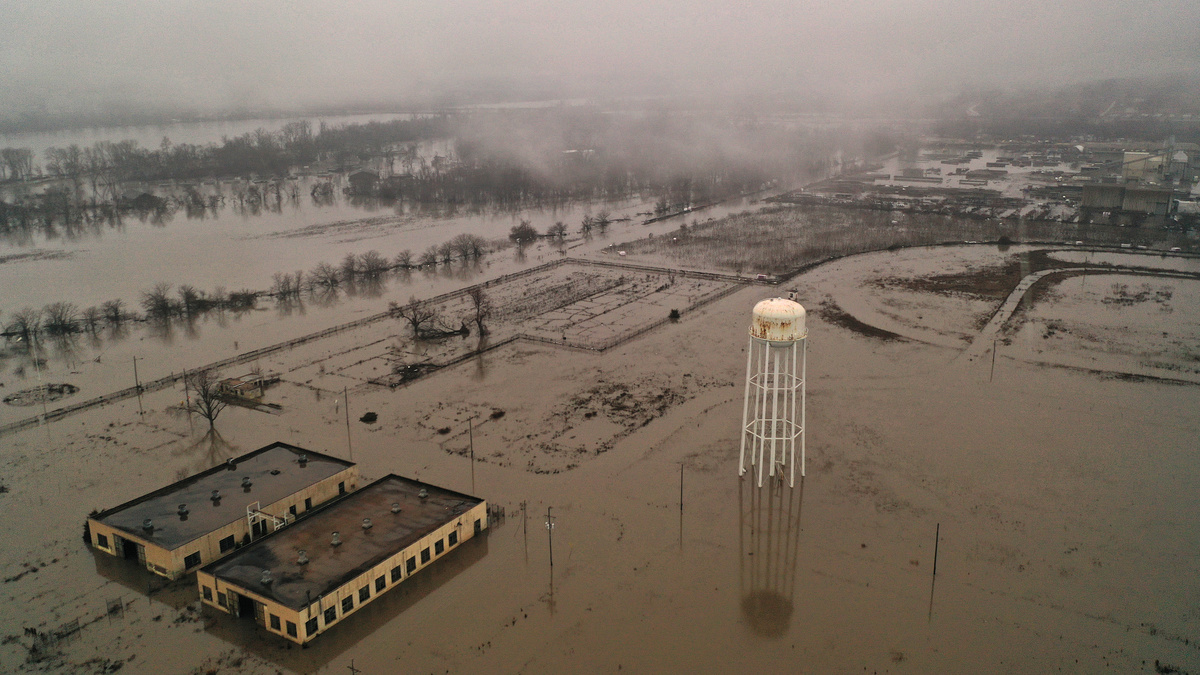 In Brownville, Nebraska, floodwaters lapped at the edge of the small town of 132 people, closing the main bridge across the Missouri River.
