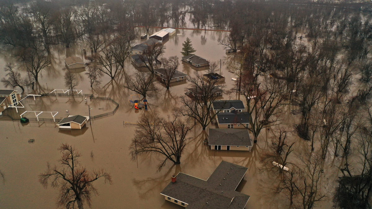 The floodwaters have inundated a large swath of farm states Iowa and Nebraska along the Missouri River, North America's longest river, prompting half of Iowa's 99 counties to declare states of emergency.