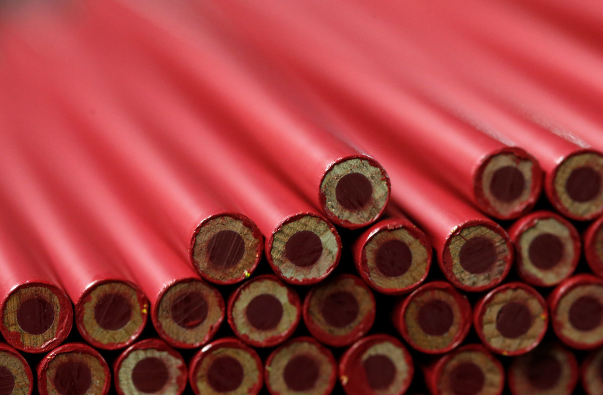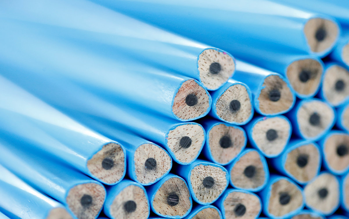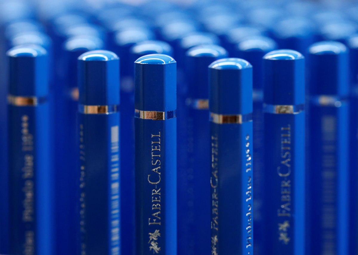 Employee David Decker of Faber-Castell, manufacturer of wood-cased pencils, controls pencils during their production in Stein near Nuremberg, Germany January 16, 2018. Picture taken January 16, 2018. REUTERS/Michaela RehleWood-cased pencils are pictured in a shop at Faber-Castell manufacturer in Stein near Nuremberg, Germany January 16, 2018. Picture taken January 16, 2018. REUTERS/Michaela RehleEmployee controls wood-cased pencils during their production at Faber-Castell manufacturer in Stein near Nuremberg, Germany January 16, 2018. Picture taken January 16, 2018. REUTERS/Michaela RehleDaniel Rogger, CEO of Faber-Castell, manufacturer of wood-cased pencils, is pictured during an interview in Stein near Nuremberg, Germany January 16, 2018. Picture taken January 16, 2018. REUTERS/Michaela RehleA company name of Faber-Castell, wood-cased pencils' manufacturer, is pictured at the headquarters in Stein near Nuremberg, Germany January 16, 2018. Picture taken January 16, 2018. REUTERS/Michaela RehleFaber-Castell logo is seen on a jacket during wood-cased pencils production at Faber-Castell manufacturer in Stein near Nuremberg, Germany January 16, 2018. Picture taken January 16, 2018. REUTERS/Michaela RehleWood-cased pencils are pictured during their production at Faber-Castell manufacturer in Stein near Nuremberg, Germany January 16, 2018. Picture taken January 16, 2018. REUTERS/Michaela RehleWood-cased pencils are pictured during their production at Faber-Castell manufacturer in Stein near Nuremberg, Germany January 16, 2018. Picture taken January 16, 2018. REUTERS/Michaela RehleWood-cased pencils are pictured during their production at Faber-Castell manufacturer in Stein near Nuremberg, Germany January 16, 2018. Picture taken January 16, 2018. REUTERS/Michaela RehleWood-cased pencils are pictured during their production at Faber-Castell manufacturer in Stein near Nuremberg, Germany January 16, 2018. Picture taken January 16, 2018. REUTERS/Michaela Rehle