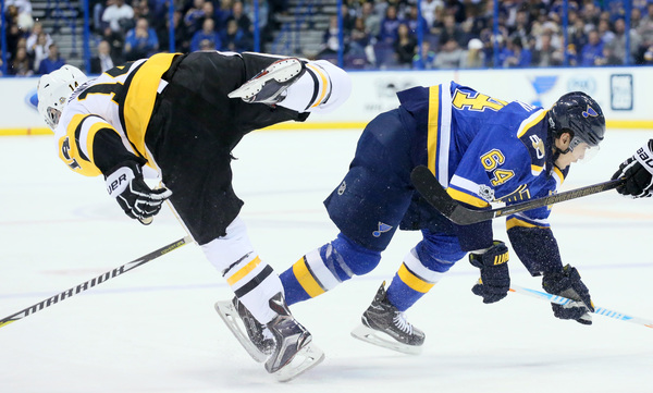 St. Louis ended up with its two-man advantage after Penguins defenseman Ian Cole was penalized for interference at 18:45 and Kris Letang was called for slashing at 19:25.