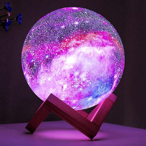 With peaks and valleys all across this 3-D moon lamp, guests and family alike will be impressed with how realistic it looks and feels. The rechargeable battery provides up to 12 hours of light — and the included remote lets you switch between 16 different soothing colors.
