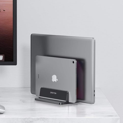 If you've got limited desktop space, this dock can help open some up when you're not using your laptop. It holds your laptop upright, giving it a smaller footprint than when laying flat — and the anodized aluminum frame is even scratch-resistant.