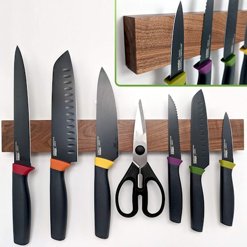 Not enough countertop space for a bulky knife block? Downsize to this sleek knife bar instead. It's made from genuine walnut wood, making it a classy addition to any kitchen — and the magnetic grip is strong enough to securely hold onto nearly any type of knife.