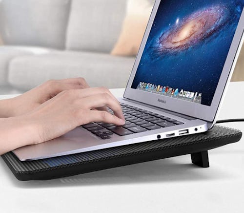 Ever notice how hot your laptop can get when it's sitting flat? This cooling pad can help. The height is adjustable, which means it can also be used as a laptop stand — and the three built-in fans run at an ultra-silent level so as to not disturb others. One customer wrote, "It's super quiet! It's also lightweight, yet very sturdy, and the metal mesh does an excellent job of keeping the laptop in place and directing the air around more evenly."