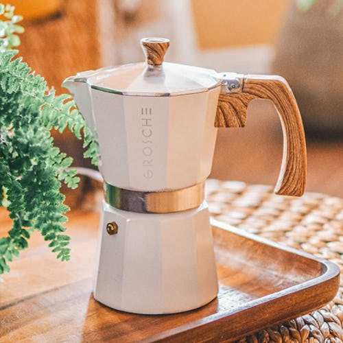 You don't need to buy an expensive machine to make delicious espresso — just grab this stovetop pot. It's designed to work on all types of stoves, while the soft-touch handle features an extra burn guard to help keep your fingers shielded. One reviewer also wrote that "the finish is very nice, and the handle and top part stay cool to the touch, which is amazing."