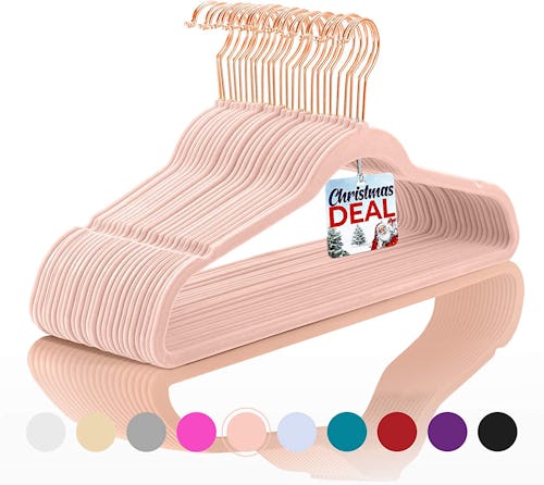 Tired of discovering your clothes have slipped off your hangers? Then it's time to upgrade to these velvet ones. The velvet creates more friction than plastic, which keeps your garments from sliding off. And if you aren't into pink? They also come in dozens of other colors. One reviewer wrote, "18 months later I’m dropping by for my third box of these beauties." They continued, "Function as expected and have experienced nothing but joy!"