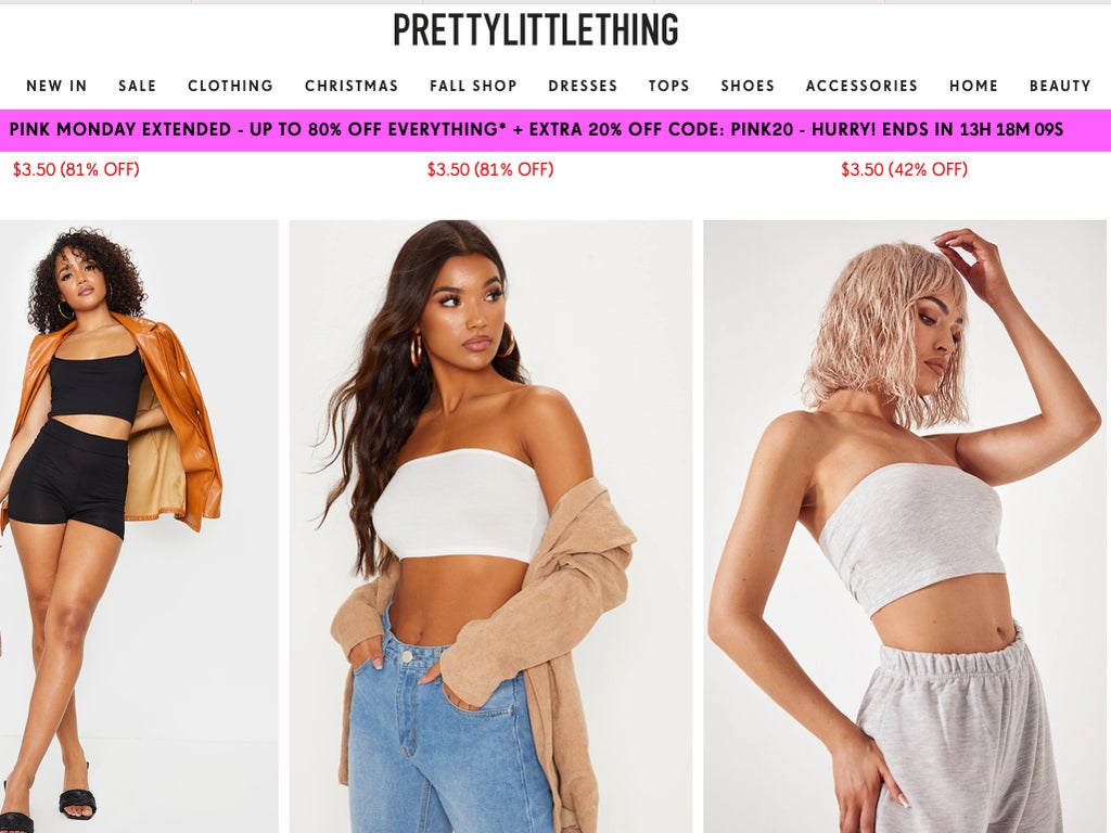 In a statement to The Independent, a spokesperson for Pretty Little Thing said: “Unique Black Friday offers are much anticipated by our customers and a planned part of our marketing strategy. The items on sale are carefully selected and discounting is a marketing investment that we make and is incorporated into our costing model, it does not in any way impact the cost price we pay to suppliers, or the way we value the work that goes into creating the garments. We use our discounting strategies to give our customers access to on trend items no matter what their budget.”