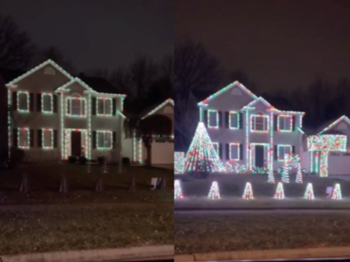 At the start of the video, the house was outlined in green, red, and white alternating Christmas bulbs while an outdoor speaker was blasting “Rockin’ Around the Christmas Tree” by Brenda Lee. As the song went into the first chorus, the lights turned into long streams of fading holiday hues. And then, out of nowhere, Christmas tree light fixtures and the subsequent display around the greenery in the front yard turned on.
