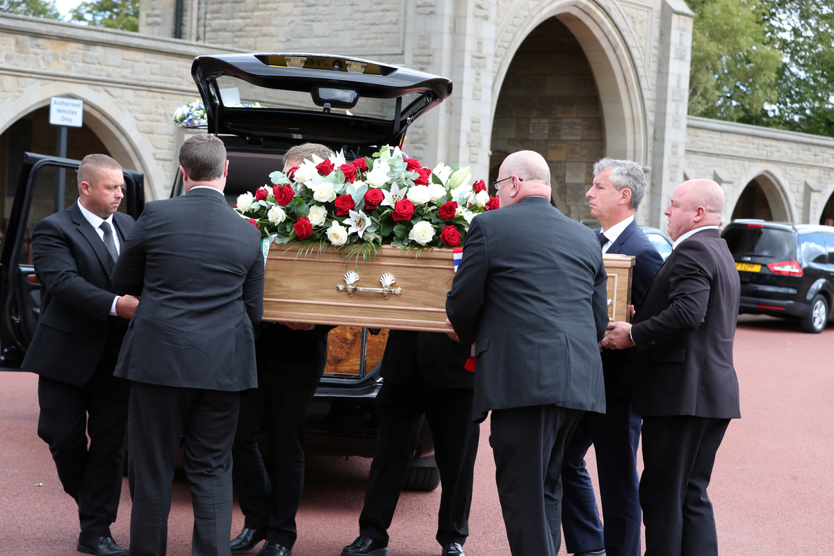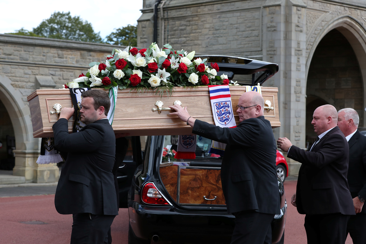 The cortege stopped outside the Hirst Welfare Centre, where Charlton had polished his soccer skills as a child. It then proceeded to the Newcastle crematorium.