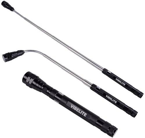 This flashlight turns into a telescoping tool (with a flexible neck) that offers an assist for getting into those tight spaces when you drop your keys, tools, and other magnetic items you drop. The head of the flashlight is magnetized, and it can extend out to 22 inches for maximum reach. Capable of holding up to two pounds, this tool is ideal for retrieving small objects like nuts, bolts, screws, and even jewelry.