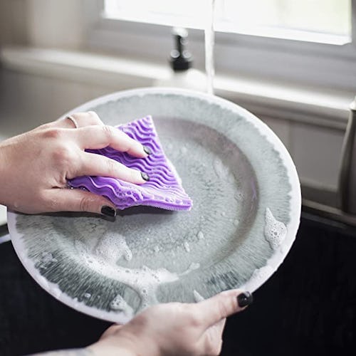 If you're tired of your kitchen sponge's weird smells, try these silicone scrubbing sponges. Made with food-grade silicone, these sponges work with your favorite dish soap, and are dishwasher safe. What’s more, each pack contains four sponges in two shapes so you can find the one that best fits your needs.