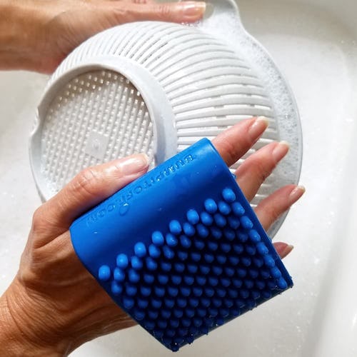 This multipurpose brush fits comfortably in your hand to clean just about everything and everyone. Use the Bump It Off scrubber to remove lint and stains from fabric, scrub veggies, groom your dog, or exfoliate your own skin, the list is almost endless. Made with 100% silicone, this brush is eco-friendly and dishwasher safe (top rack only).