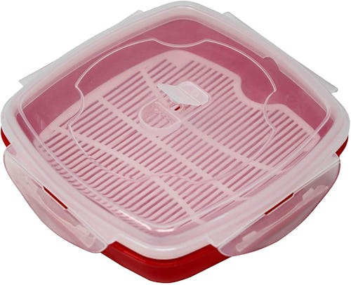 This microwavable bacon tray with a drip tray cooks with minimum mess. Simply arrange bacon strips on the rack, cover loosely with a paper towel, and cook it in the microwave. Hundreds of five-star reviews on Amazon, attest that it's more than a gimmick. "I hated cooking bacon on the stove because there is always some splatter [...]So I started my search and came across this wonderful microwave bacon cooker. It is as simple as hanging your bacon on this rack and covering it up with some paper towels. [...]We absolutely love this product, and the price was great too compared to other microwave cookers," one customer wrote.