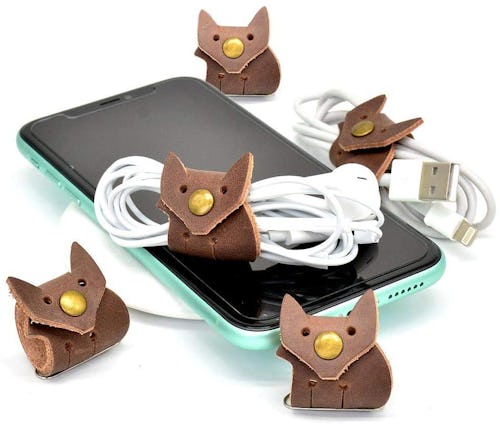 Keep your cords neat and prevent tangling (and frustration) with these sleek leather cord organizers. Ideal for headphones, USB cables, and more, these rustic cord keepers are durable and look even better with age. Each order comes with five cord organizers, and they look like cute little animals.
