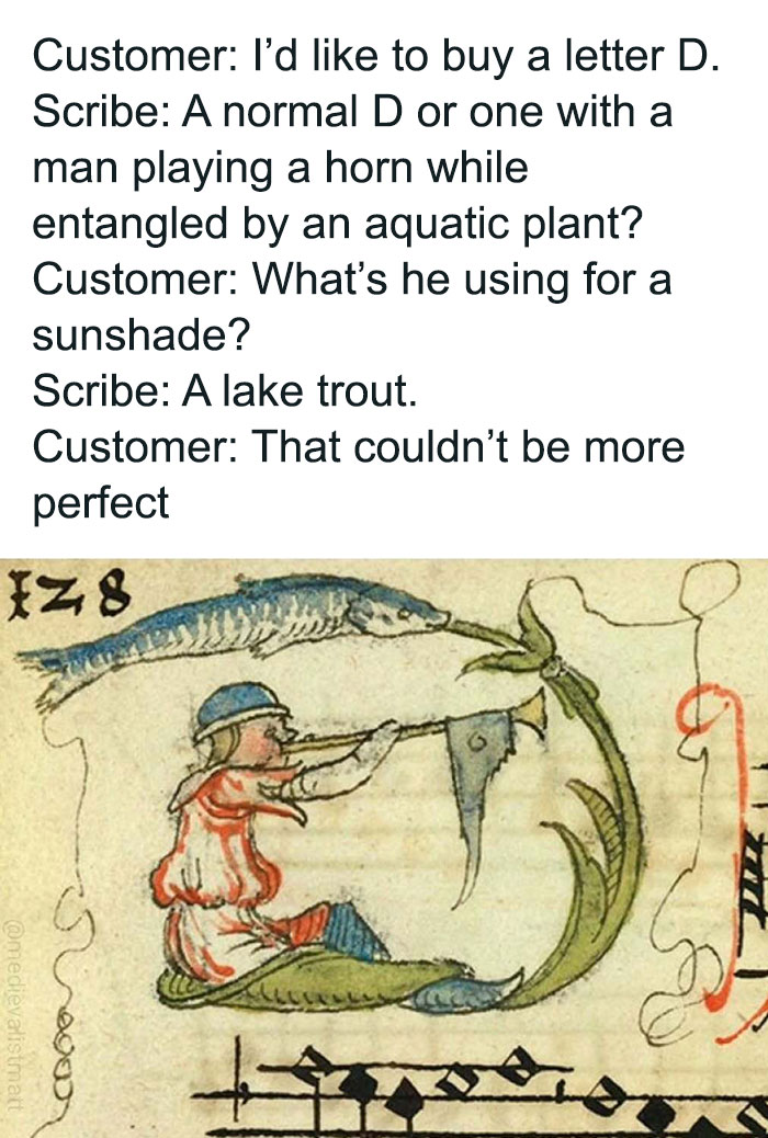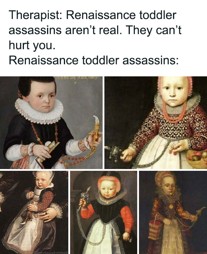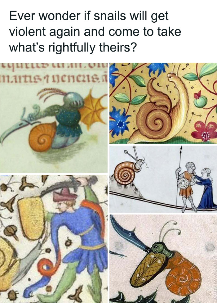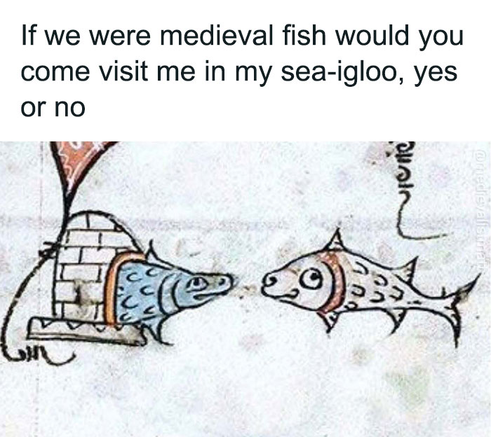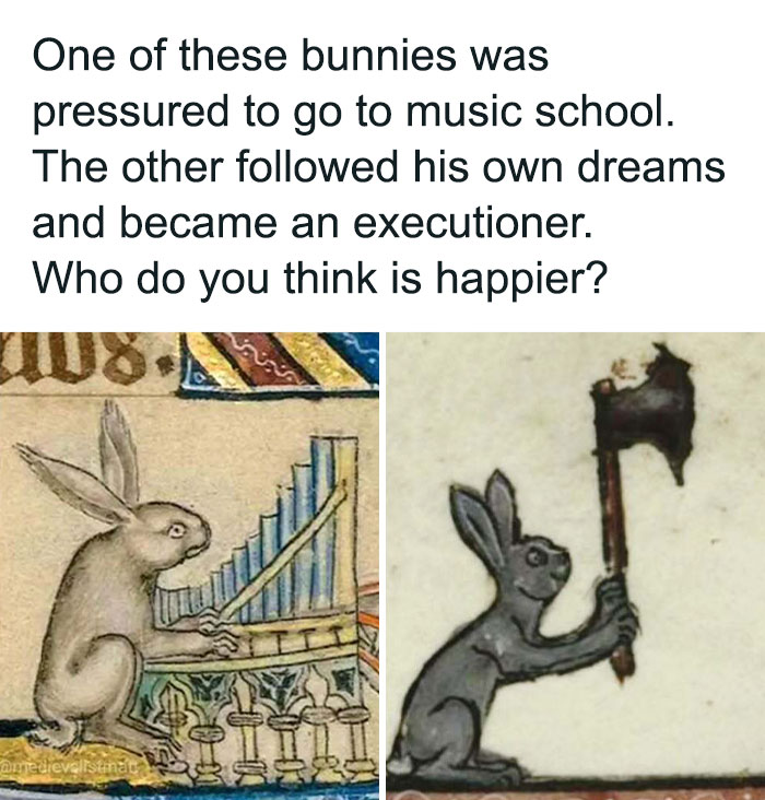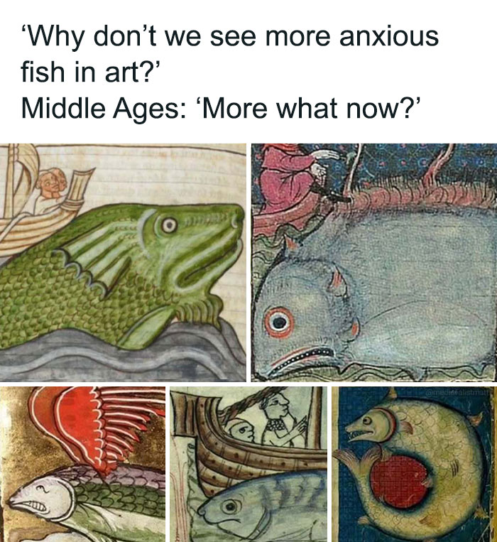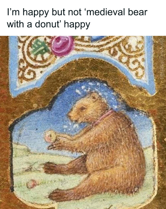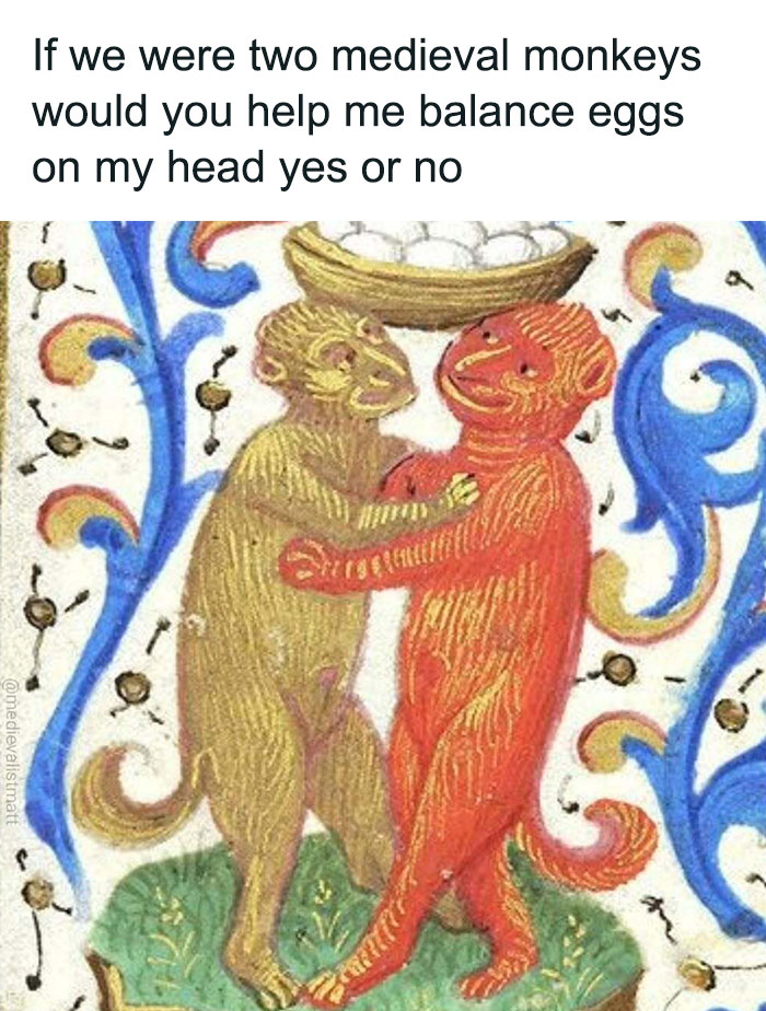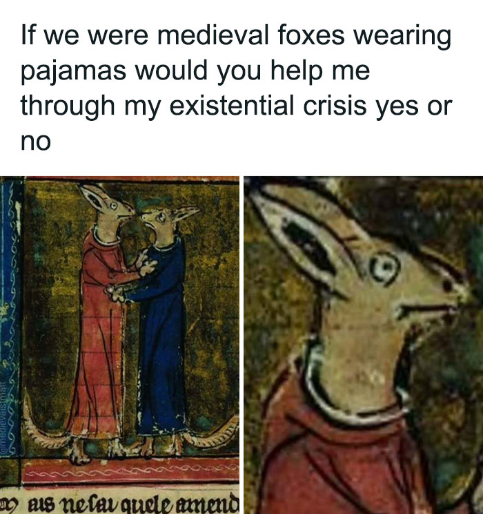 To be fair, it’s really no surprise that this particular period in history has become such a popular subject for memes. Medieval times—and more specifically, medieval art—are incredibly memeable. I mean, lobster-riding knights, axe-wielding rabbits, floating babies, and common folk caught in all sorts of risqué situations? That’s basically begging for a silly caption. It’s very hard to resist, even if you tried.