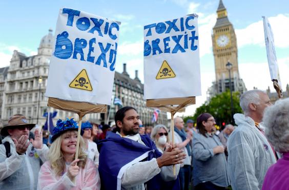 As his “Stay Angry and Fight Brexit” placard suggested, Mr Vickers, formerly of the Royal Engineers, from Newbury, Berkshire, was indeed cross: “But not with the poor sods who voted Leave. They were lied to, and those poor sods are going to get poorer – while the rich politicians who led the Leave campaign, the ones with dosh, are going to be okay.”