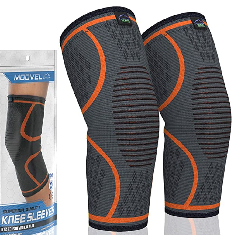 Reviewers swear by these compression knee sleeves to help with pain and inflammation. Each sleeve is made from a nylon-spandex blend that pulls on over your knees to help stabilize your joints and keep your knee in alignment while your squat, deadlift, or jog. These sleeves also offer plenty flexibility over the knee cap to avoid being too constricting.
