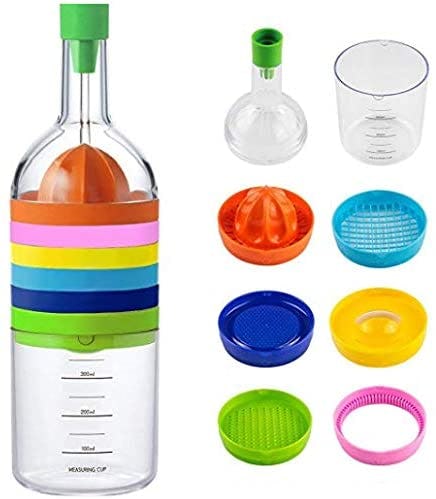 It might look like a wine bottle, but this clever kitchen tool kit is actually a funnel, juicer, grater, egg cracker, shredder, can opener, egg separator and measuring cup all wrapped into one easy-to-store package. The brightly colored tools stack on top of the measuring cup and the funnel tops it all off.