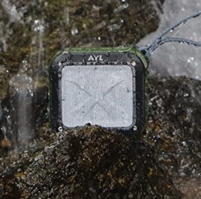 This cute little speaker keeps right on playing even if you take it in the shower, mount it to your handlebars, or clip it to your backpack. It pairs wirelessly to your phone, lasts 12 hours on a charge, measures just under 4 square inches, and has an optional bike mount.