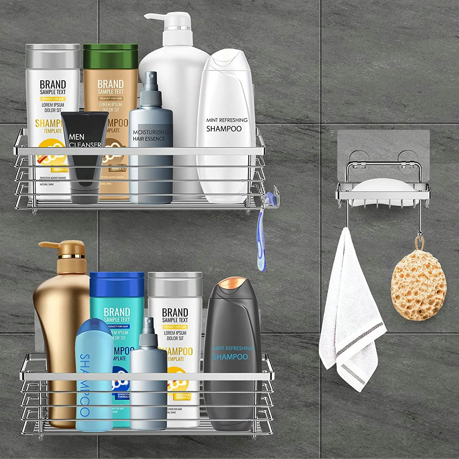 You can stop struggling to find a place for your bath products once you install these adhesive stainless steel shower caddies. The set includes two caddies and one soap holder, so there’s plenty of room for all your toiletries, plus convenient hooks for a loofah, washcloth, and razor.