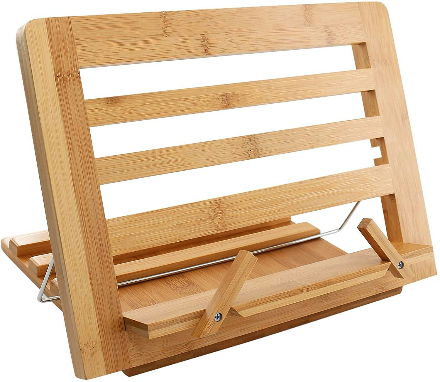 27. This bamboo cookbook stand with adjustable viewing angles