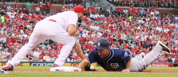 In the fourth, Jedd Gyorko continued to torment his former team, this time with an RBI double. The Cardinals took a 1-0 lead.