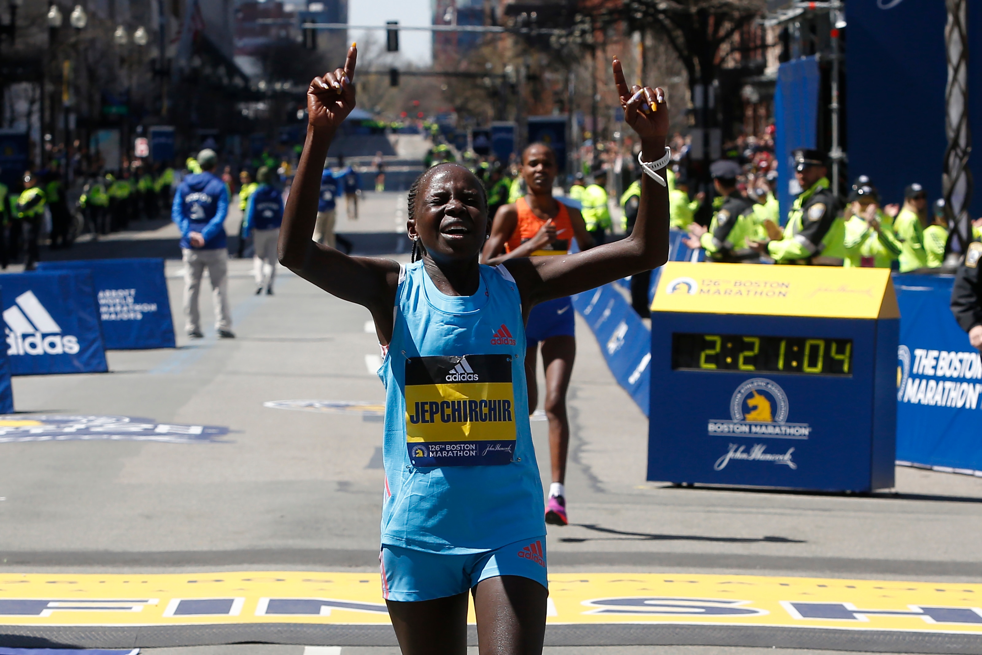 On the 50th anniversary of the first official women's race, Jepchirchir traded places with Ethiopia's Ababel Yeshaneh eight times in the final mile (1.6km) before pulling ahead for good on Boylston Street, finishing in 2 hours, 21 minutes, 1 second.