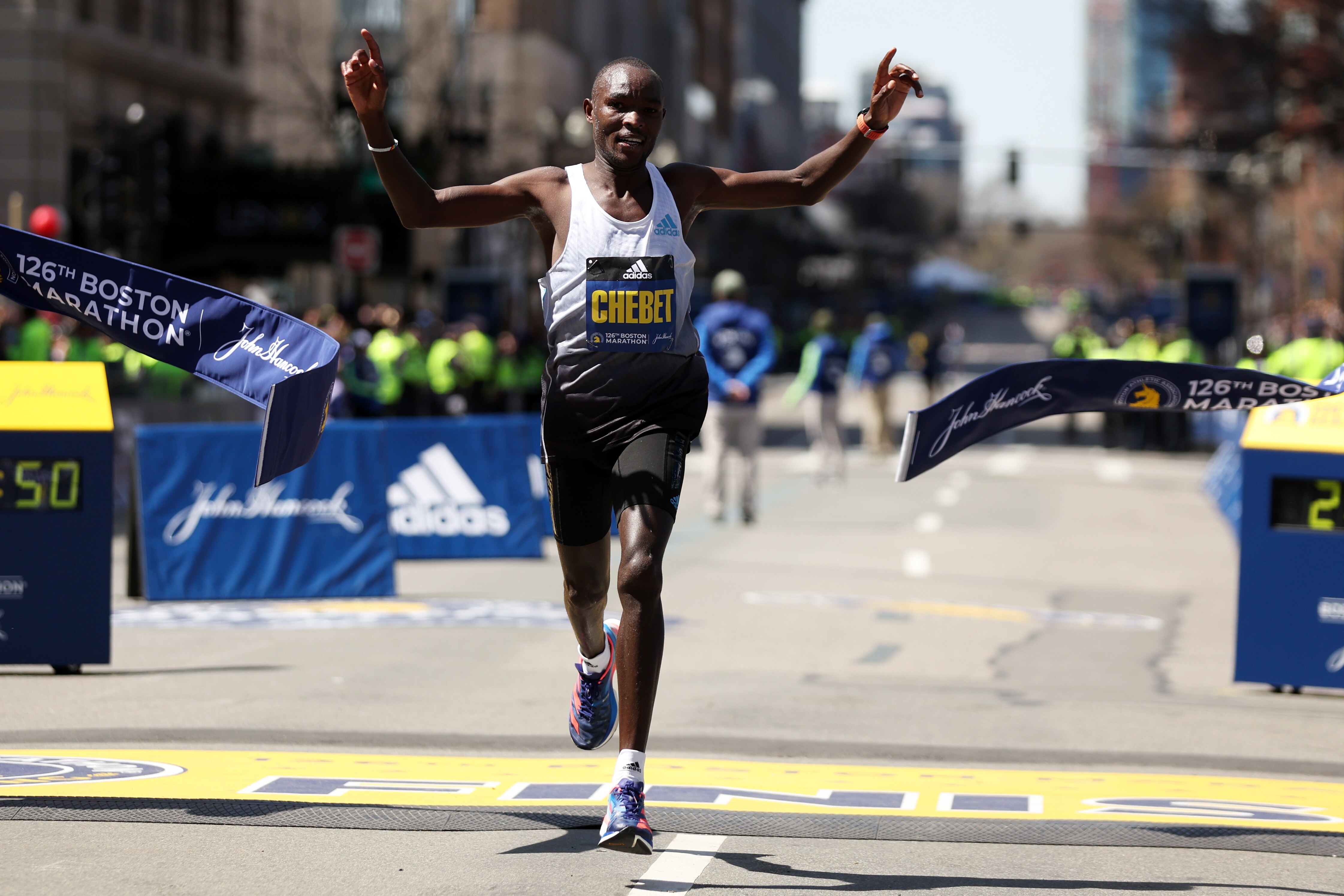 About 20 men stayed together before Chebet and Geay broke from the pack coming out of Heartbreak Hill. Chebet pulled away a couple of miles later.