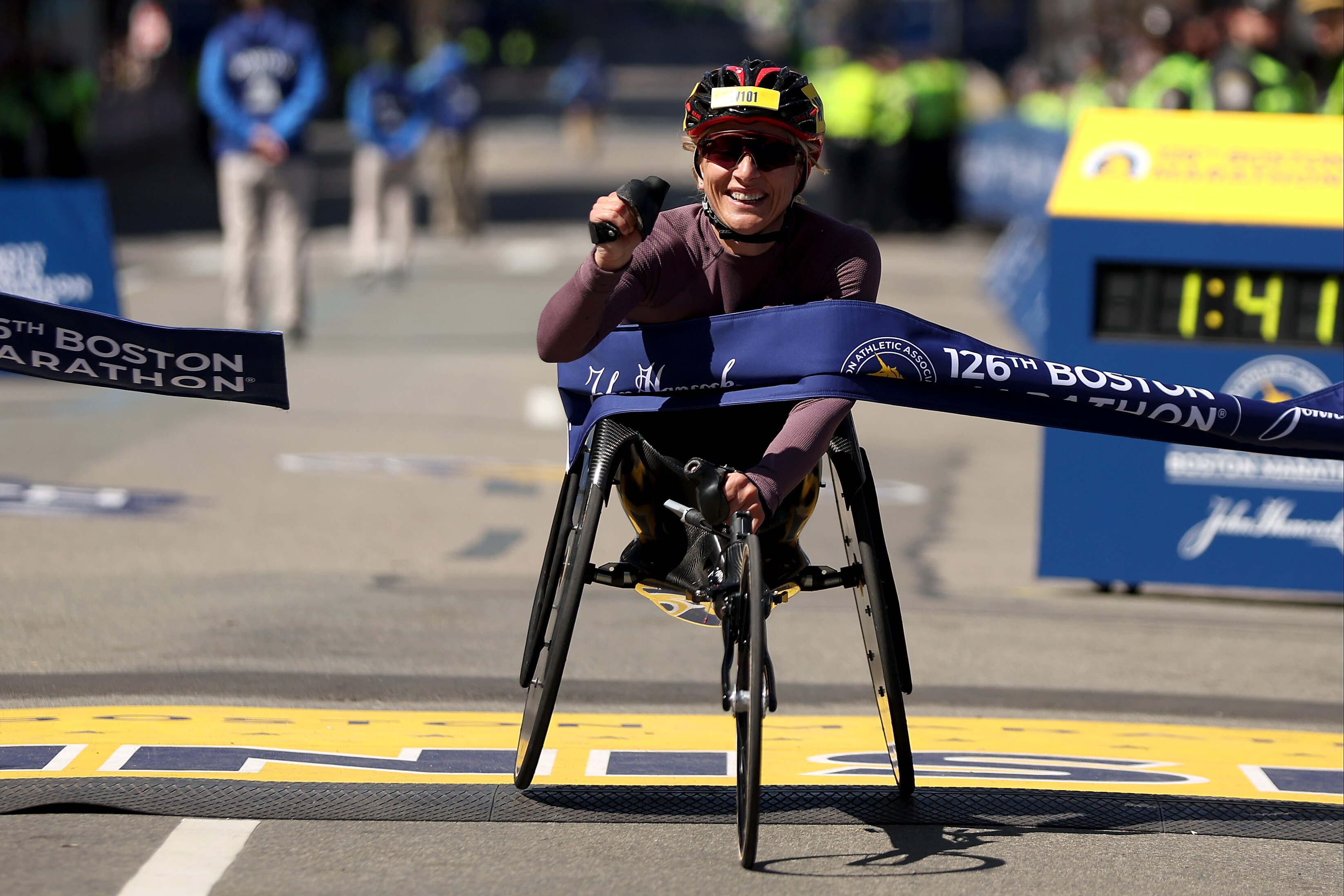 Switzerland's Manuela Schär won her second-straight Boston crown and fourth overall, finishing in 1:41:08.