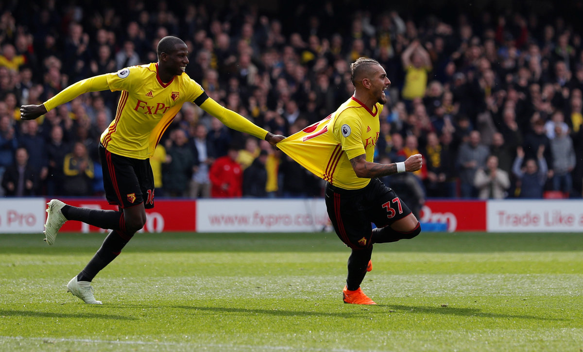 Watford got off to a flying start with a clever pass from Abdoulaye Doucoure allowing the unmarked Pereyra to score within the first two minutes. The Argentine assisted Andre Gray's header in the 28th minute to double the hosts' lead.