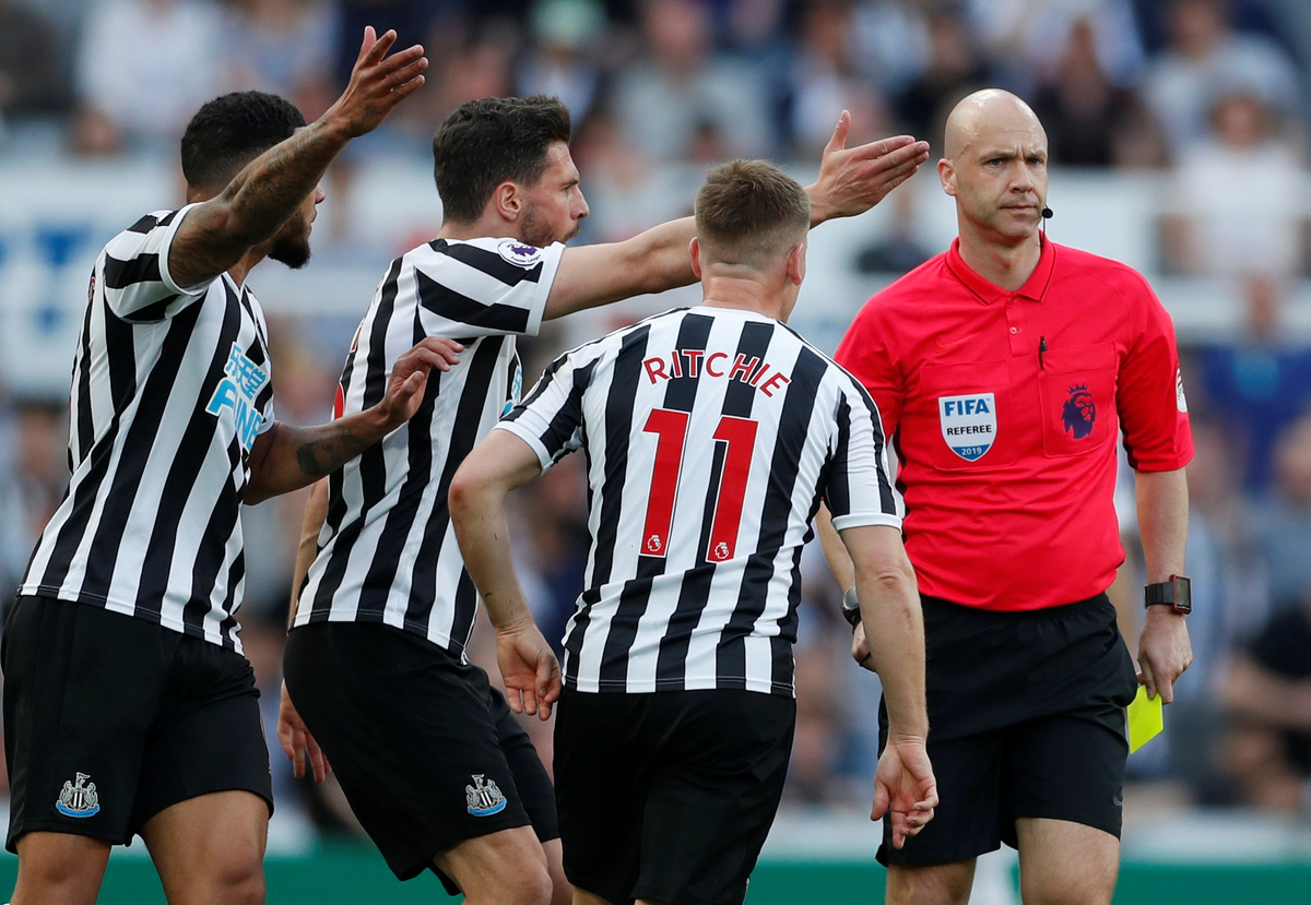 Soccer Football - Premier League - Newcastle United v Southampton - St James' Park, Newcastle, Britain - April 20, 2019 Southampton's James Ward-Prowse is shown a yellow card by referee Anthony Taylor as Newcastle United players react Action Images via Reuters/Lee Smith