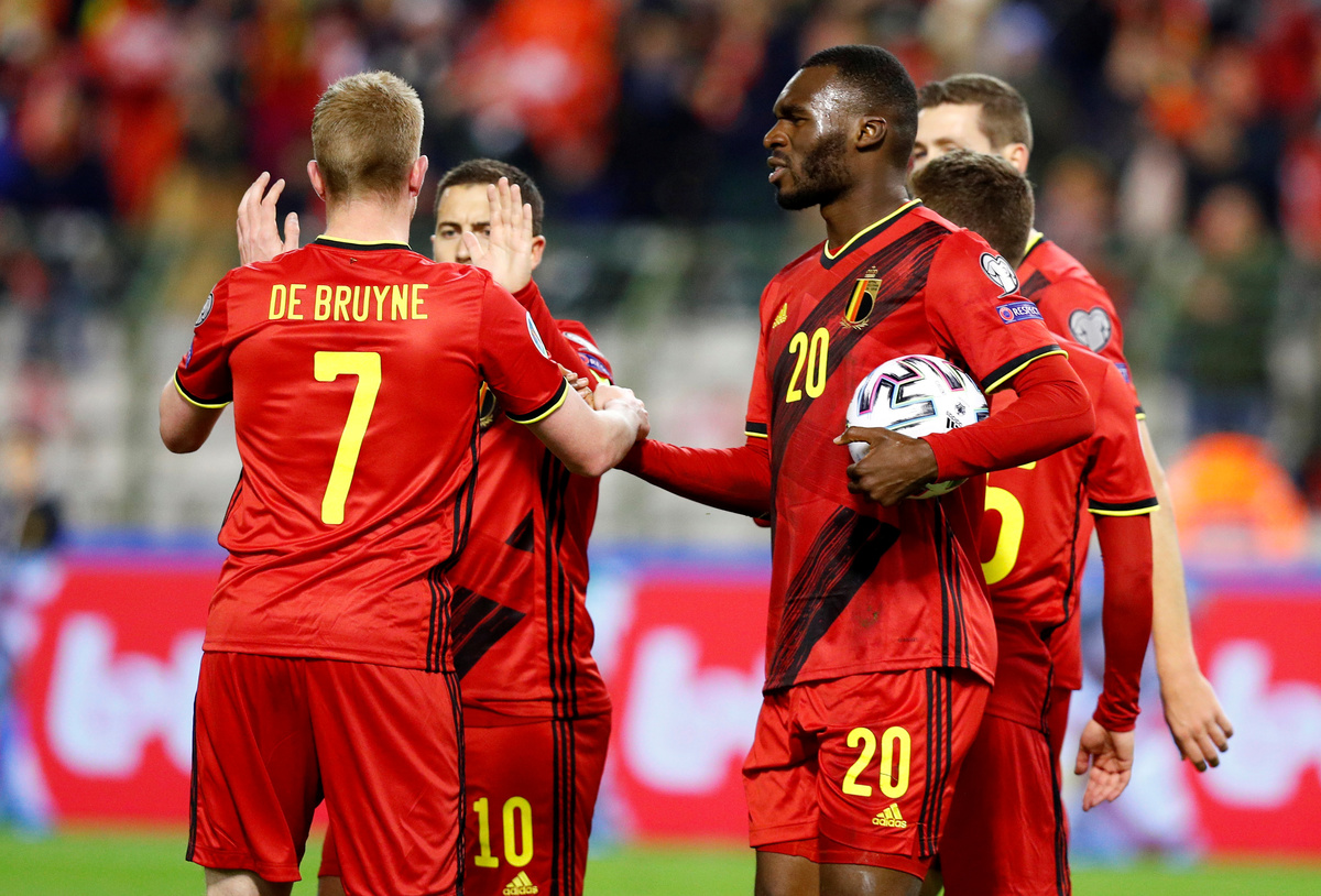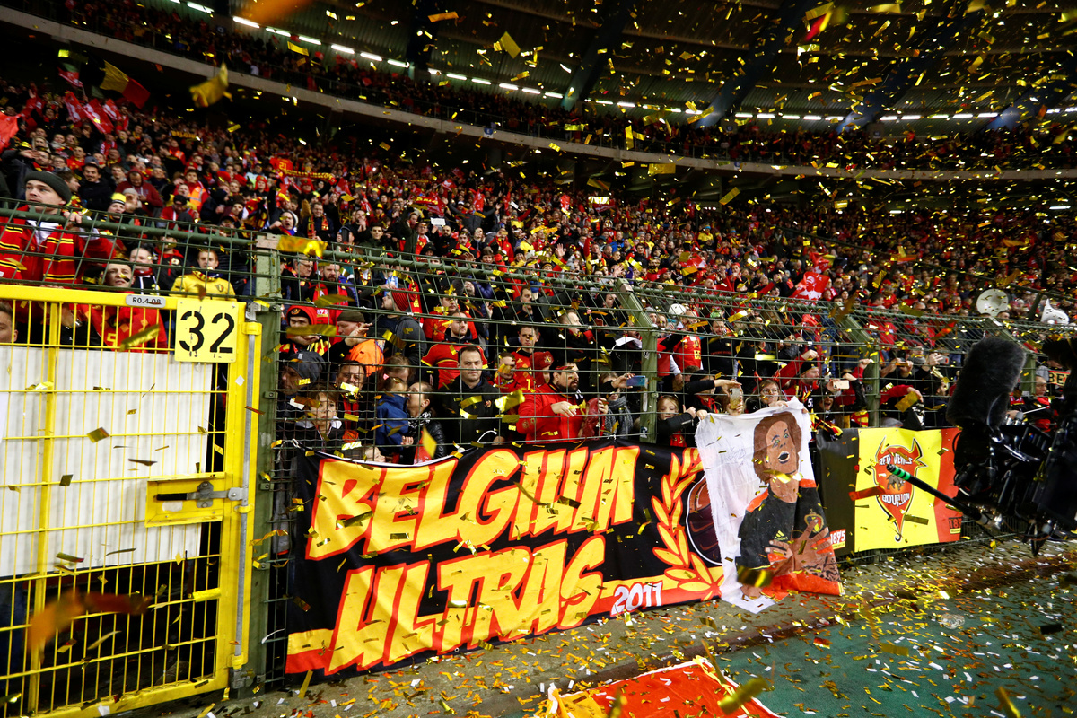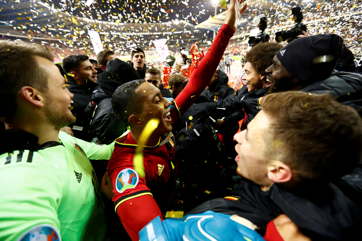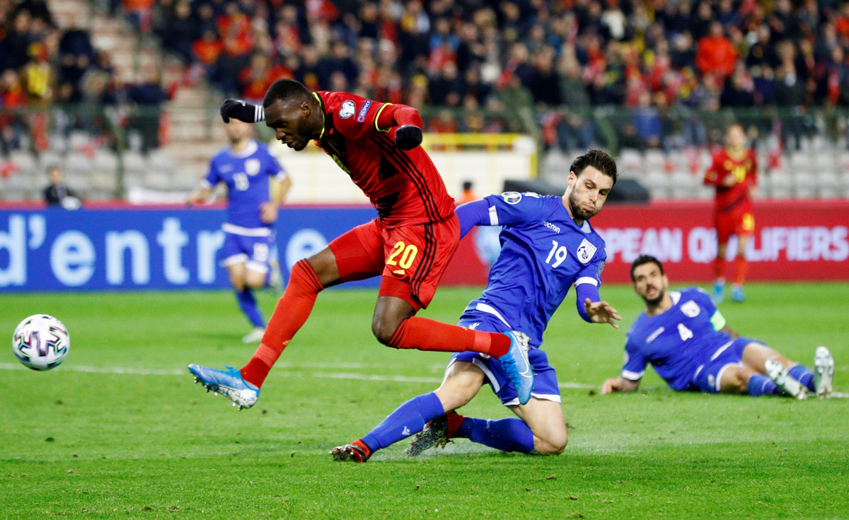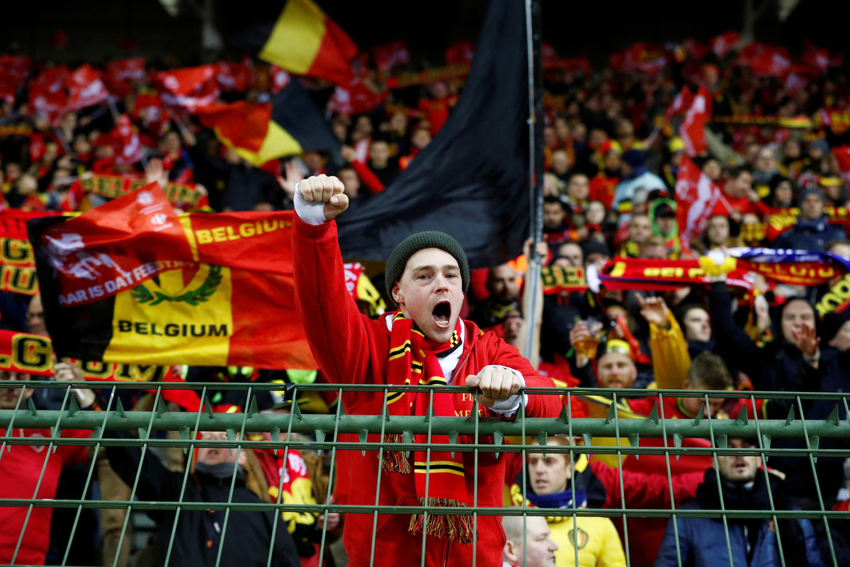 Soccer Football - Euro 2020 Qualifier - Group I - Belgium v Cyprus - King Baudouin Stadium, Brussels, Belgium - November 19, 2019 Belgium's Thorgan Hazard in action with Cyprus' Nicholas Ioannou REUTERS/Francois LenoirSoccer Football - Euro 2020 Qualifier - Group I - Belgium v Cyprus - King Baudouin Stadium, Brussels, Belgium - November 19, 2019 Belgium's Christian Benteke in action with Cyprus' Kypros Christoforou REUTERS/Francois LenoirSoccer Football - Euro 2020 Qualifier - Group I - Belgium v Cyprus - King Baudouin Stadium, Brussels, Belgium - November 19, 2019 Belgium fans celebrate after the match REUTERS/Francois LenoirSoccer Football - Euro 2020 Qualifier - Group I - Belgium v Cyprus - King Baudouin Stadium, Brussels, Belgium - November 19, 2019 Belgium fans celebrate after the match REUTERS/Francois Lenoir TPX IMAGES OF THE DAYSoccer Football - Euro 2020 Qualifier - Group I - Belgium v Cyprus - King Baudouin Stadium, Brussels, Belgium - November 19, 2019 Belgium's Youri Tielemans celebrates with teammates after the match REUTERS/Francois Lenoir TPX IMAGES OF THE DAYSoccer Football - Euro 2020 Qualifier - Group I - Belgium v Cyprus - King Baudouin Stadium, Brussels, Belgium - November 19, 2019 Belgium fans REUTERS/Francois Lenoir