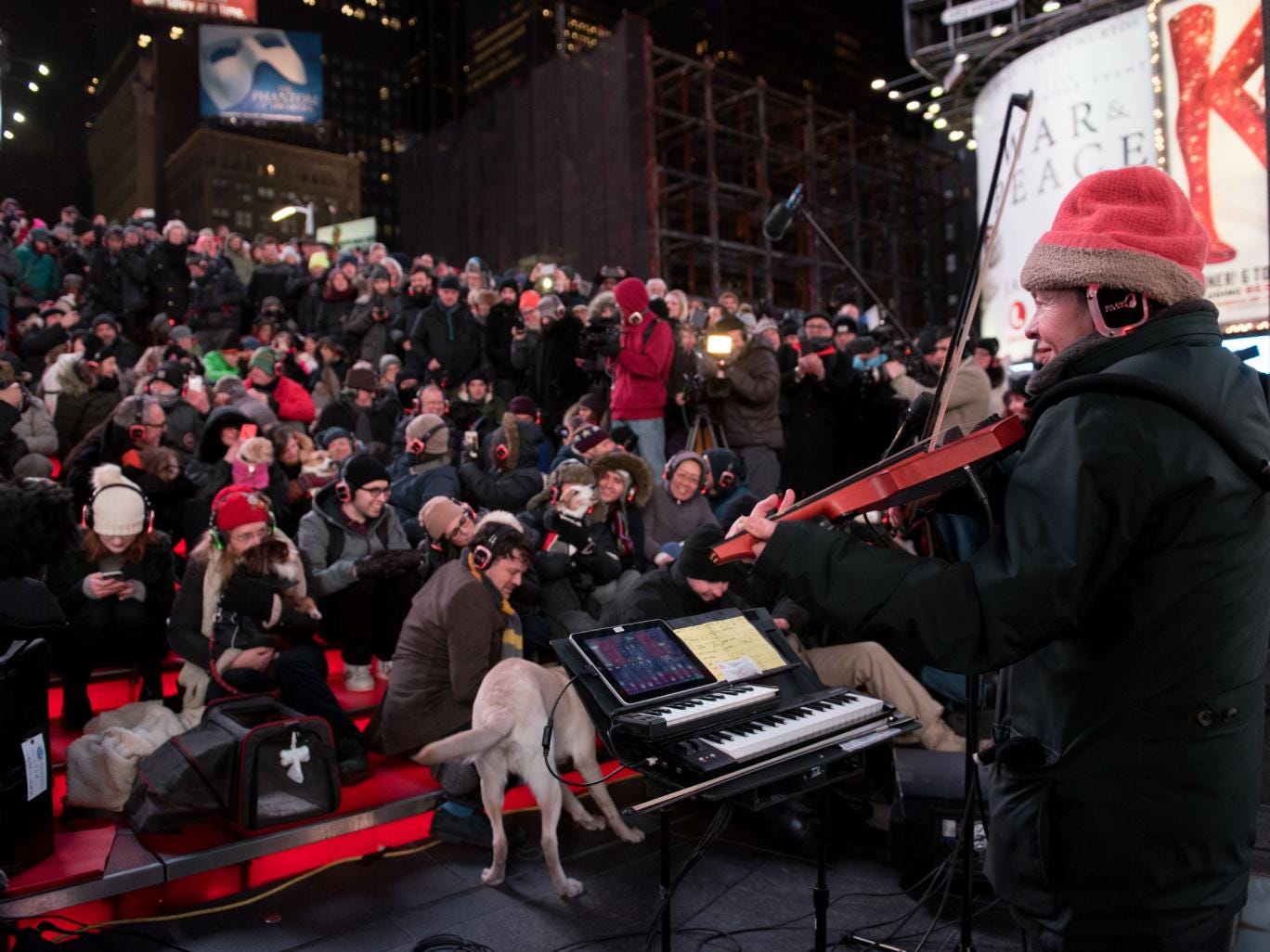 The free event in Times Square was set up in tribute to 9/11 first responder dogs, with electronic sounds played to the animals over low-decibel speakers. It wasn’t long before dogs start barking and howling at the unexpected noises. Their humans could join in too with ‘silent disco’ style headphones.