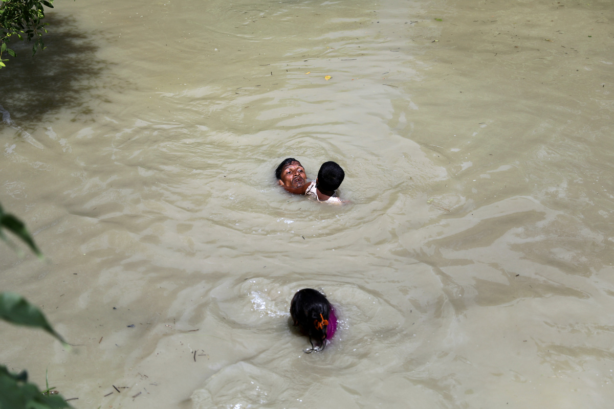 Photographers help a Rohingya refugee to come out of Naf River as they cross the Myanmar-Bangladesh border in Palong Khali, near Cox's Bazar, Bangladesh, November 1, 2017. Hannah McKay: "We were standing, looking out over paddy fields and grasslands - lots of water and one thin path leading to the border with Myanmar. In the distance we could see a huge group of people. But they weren't moving. It was 4 p.m. in the afternoon with only two hours of daylight left. So we decided to move towards them. It took us about an hour along the muddy path, meeting border guards and persuading them to let us pass. Then we saw thousands of refugees just sitting there, with more Bangladeshi border guards telling us to go back. We could see something was going on behind the crowd. So we waited for an opportunity to move closer, and that's when we saw them. The crowd was sitting on a riverbank and behind them, about three metres below, in the river itself, there were just hundreds of refugees coming across every minute. It was non-stop. There was no end to the people. People carrying babies. Elderly people being escorted through the water and mud, more than knee-deep. And we were just photographing everyone coming towards us. Then this woman appeared. She got to the point where she needed to get up to the footpath where we were. But she was exhausted. Two refugee men on her level were trying to push her up, which was when we reached out to help. Reuters photographer, Adnan Abidi, took a hand. Another photographer took another and I got her leg when she got within range. It was a case of dragging her. She lay there for a few minutes. I have no idea what happened to her. You are there trying to do your job with a camera in your hand. And then your heart overrules your head." REUTERS/Hannah McKay