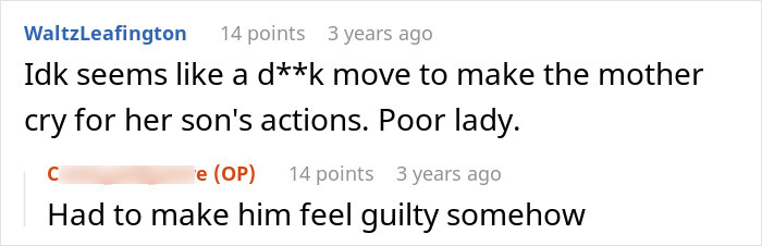 Some readers thought it was wrong to involve the mom in the revenge