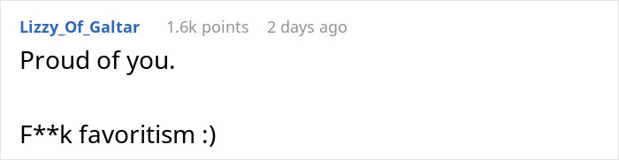 While some commenters asked additional questions, which the poster answered, others shared their own stories and commended the person for standing up against favoritism