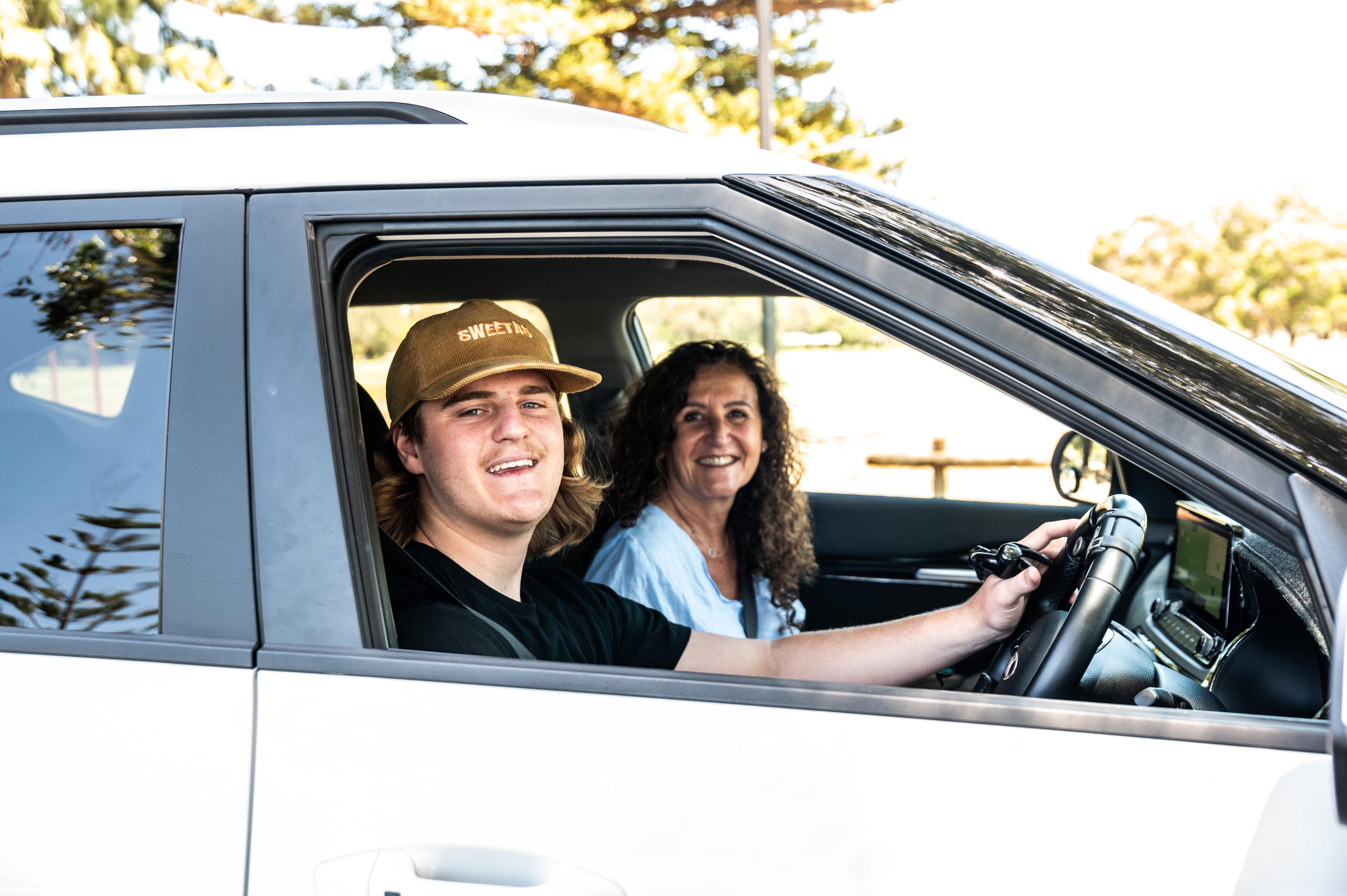 Max Devery, 16, is learning to drive for the first time with Ms Steele.