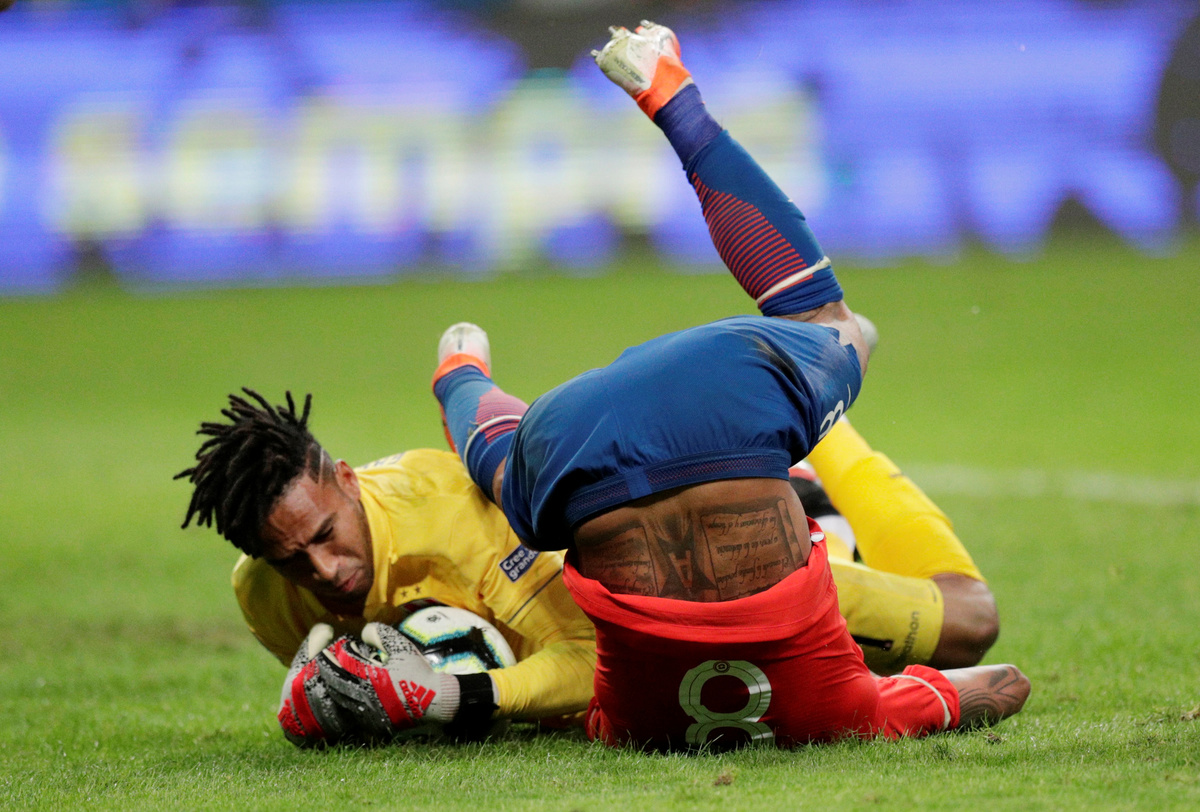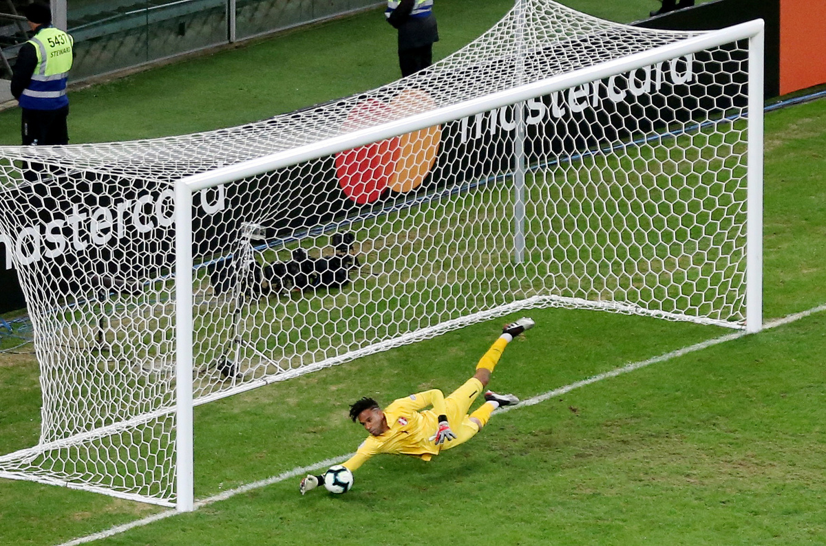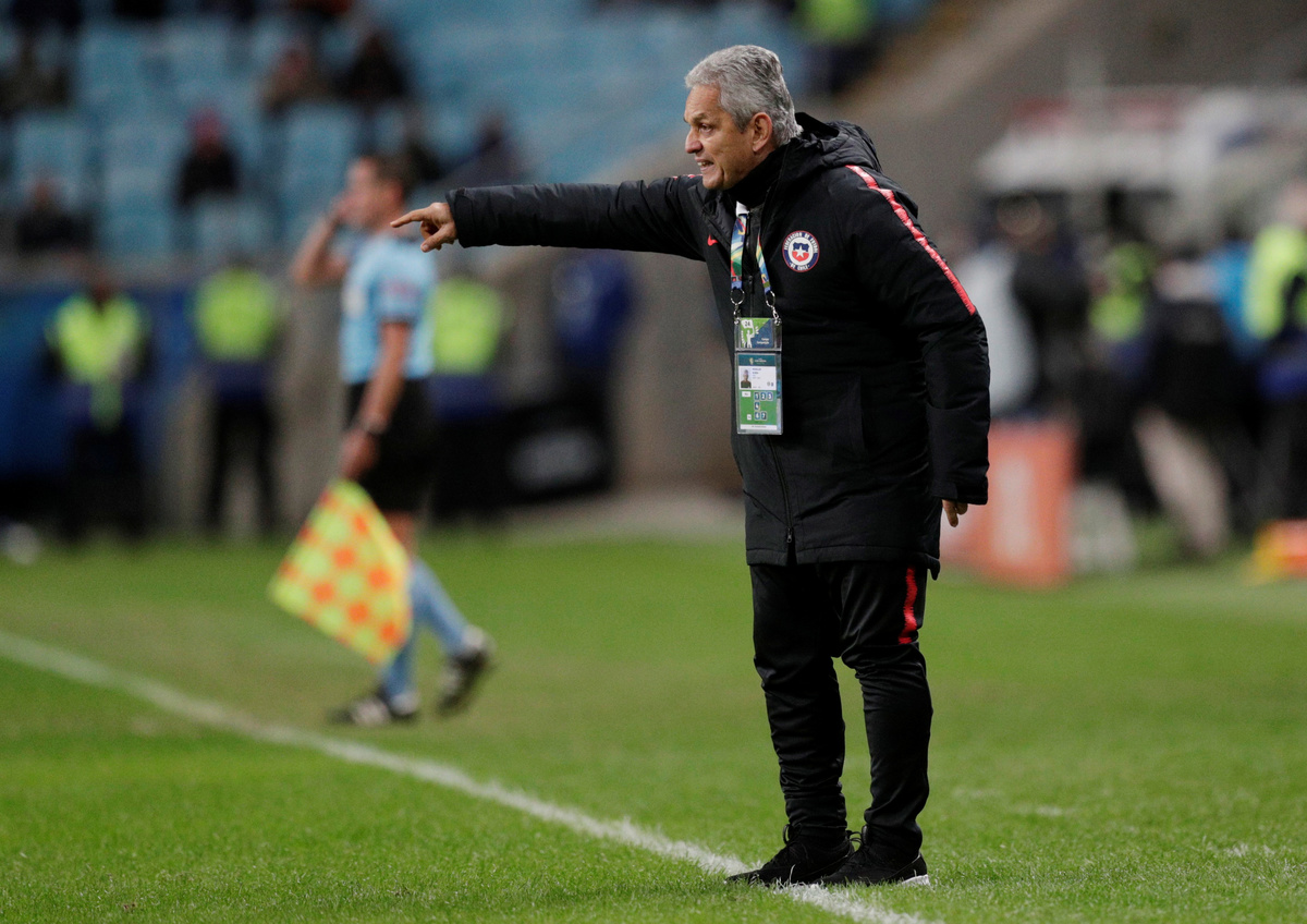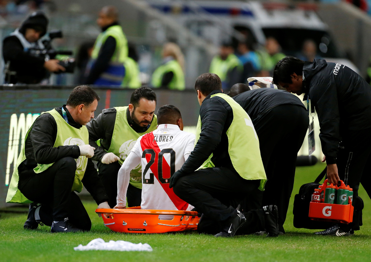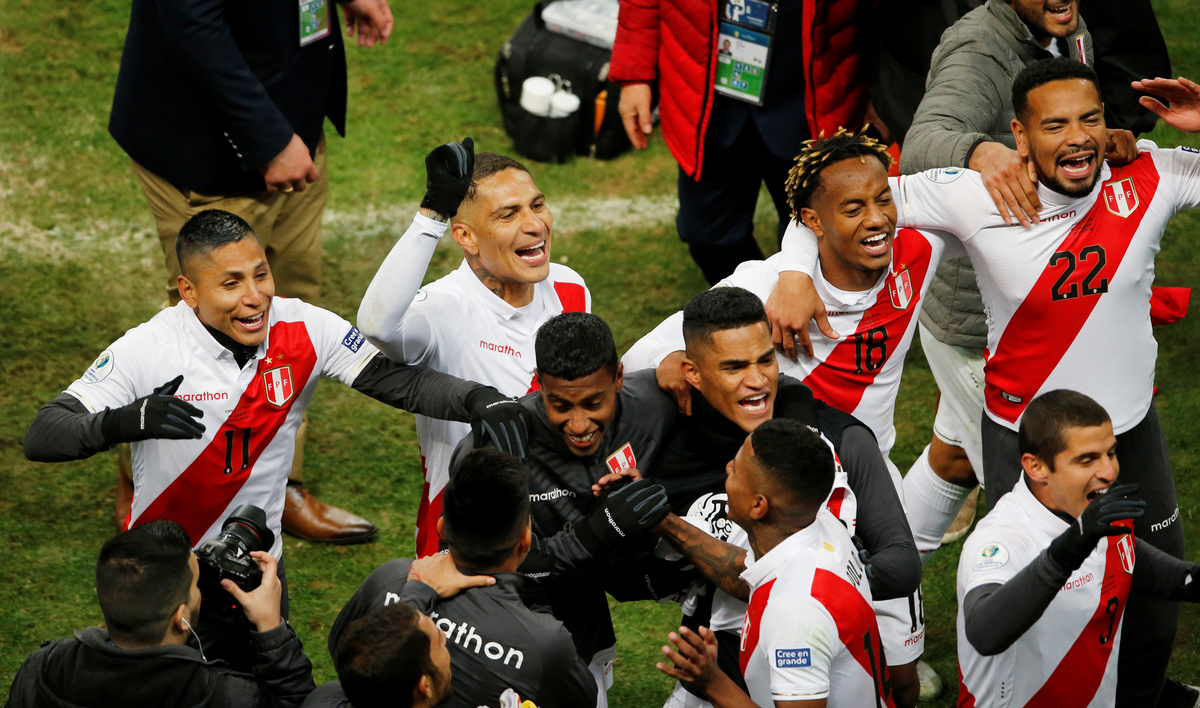 Soccer Football - Copa America Brazil 2019 - Semi Final - Chile v Peru - Arena do Gremio, Porto Alegre, Brazil - July 3, 2019 Peru's Pedro Gallese makes a save REUTERS/Luisa GonzalezSoccer Football - Copa America Brazil 2019 - Semi Final - Chile v Peru - Arena do Gremio, Porto Alegre, Brazil - July 3, 2019 Chile's Erick Pulgar is shown a yellow card by referee Wilmar Roldan REUTERS/Amanda PerobelliSoccer Football - Copa America Brazil 2019 - Semi Final - Chile v Peru - Arena do Gremio, Porto Alegre, Brazil - July 3, 2019 Peru's Paolo Guerrero celebrates scoring their third goal REUTERS/Henry RomeroSoccer Football - Copa America Brazil 2019 - Semi Final - Chile v Peru - Arena do Gremio, Porto Alegre, Brazil - July 3, 2019 Peru's Miguel Trauco and Renato Tapia in action with Chile's Eduardo Vargas REUTERS/Amanda PerobelliSoccer Football - Copa America Brazil 2019 - Semi Final - Chile v Peru - Arena do Gremio, Porto Alegre, Brazil - July 3, 2019 Peru's Victor Yotun celebrates scoring their second goal REUTERS/Ueslei MarcelinoSoccer Football - Copa America Brazil 2019 - Semi Final - Chile v Peru - Arena do Gremio, Porto Alegre, Brazil - July 3, 2019 Chile's Alexis Sanchez in action with Peru's Renato Tapia REUTERS/Henry RomeroSoccer Football - Copa America Brazil 2019 - Semi Final - Chile v Peru - Arena do Gremio, Porto Alegre, Brazil - July 3, 2019 Peru's Edison Flores scores their first goal REUTERS/Diego VaraSoccer Football - Copa America Brazil 2019 - Semi Final - Chile v Peru - Arena do Gremio, Porto Alegre, Brazil - July 3, 2019 Chile's Jean Beausejour talks with Peru's Andre Carrillo REUTERS/Luisa GonzalezSoccer Football - Copa America Brazil 2019 - Semi Final - Chile v Peru - Arena do Gremio, Porto Alegre, Brazil - July 3, 2019 Peru's Edison Flores receives treatment from medical staff after sustaining an injury REUTERS/Diego VaraSoccer Football - Copa America Brazil 2019 - Semi Final - Chile v Peru - Arena do Gremio, Porto Alegre, Brazil - July 3, 2019 Peru's Paolo Guerrero celebrates after the match with team mates REUTERS/Luisa GonzalezSoccer Football - Copa America Brazil 2019 - Semi Final - Chile v Peru - Arena do Gremio, Porto Alegre, Brazil - July 3, 2019 Chile coach Reinaldo Rueda reacts REUTERS/Ueslei MarcelinoSoccer Football - Copa America Brazil 2019 - Semi Final - Chile v Peru - Arena do Gremio, Porto Alegre, Brazil - July 3, 2019 Peru coach Ricardo Gareca during the match REUTERS/Henry Romero