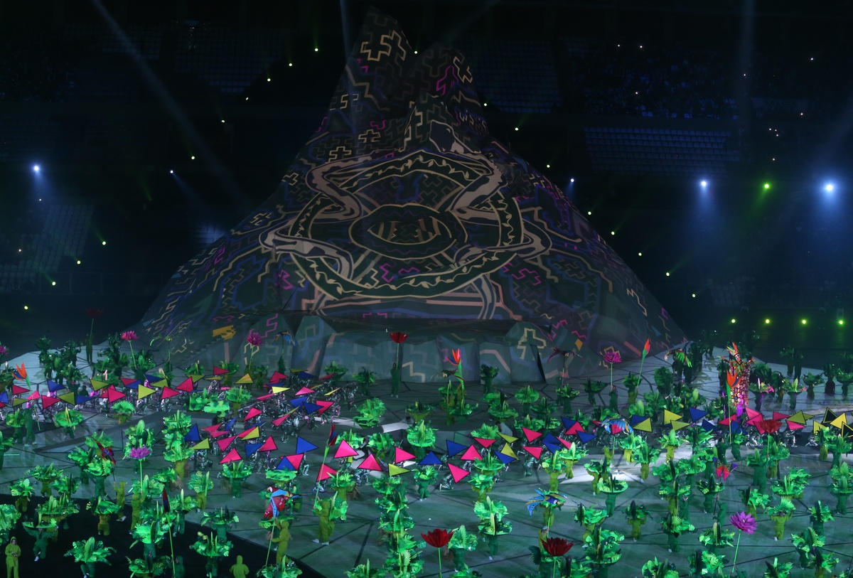There were few late arrivals for a striking opening ceremony, however, with the crowd erupting in a mighty roar that might have carried to Machu Picchu when sailor Stefano Peschiera led the Peru team into the stadium.