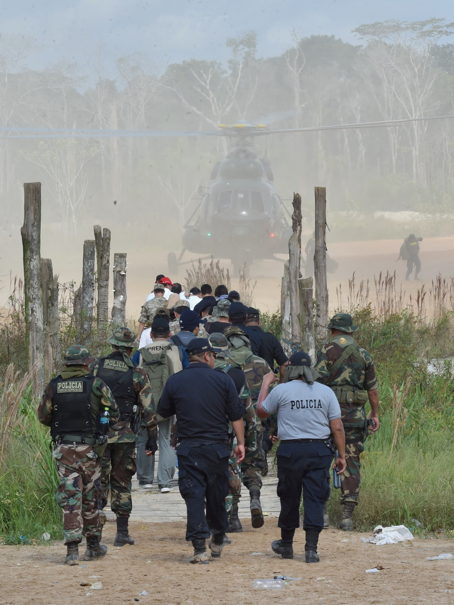 An aerial view shows a deforested area of the Amazon jungle in southeast Peru caused by illegal mining during a police operation to destroy illegal machinery and equipment used by wildcat miners in Madre de Dios, Peru, February 19, 2019. Picture taken February 19, 2019. Cristobal Bouroncle/Pool via REUTERSPolice officers participate in an operation to destroy illegal machinery and equipment used by wildcat miners in Madre de Dios, Peru, February 19, 2019. Picture taken February 19, 2019. Cristobal Bouroncle/Pool via REUTERSA miner is arrested during a police operation to destroy illegal machinery and equipment used by wildcat miners in Madre de Dios, Peru, February 19, 2019. Picture taken February 19, 2019 Cristobal Bouroncle/Pool via REUTERSPeruvian military take over an illegal miners' village during a police operation to destroy illegal machinery and equipment used by wildcat miners in Madre de Dios, Peru, February 19, 2019. Picture taken February 19, 2019 Cristobal Bouroncle/Pool via REUTERSAn aerial view shows a deforested area of the Amazon jungle in southeast Peru caused by illegal mining during a police operation to destroy illegal machinery and equipment used by wildcat miners in Madre de Dios, Peru, February 19, 2019. Picture taken February 19, 2019 Cristobal Bouroncle/Pool via REUTERS