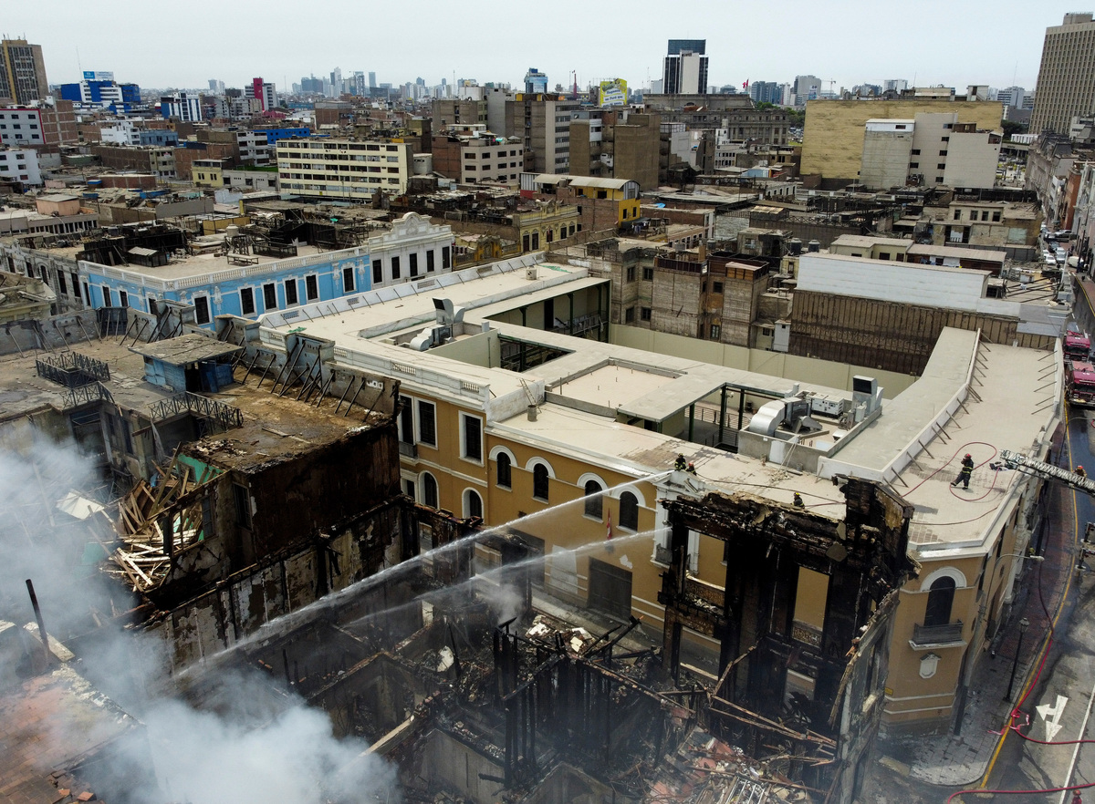 Interior Minister Vicente Romero disputed claims circulating on social media that the Lima blaze had been caused by a police officer's tear gas grenade.