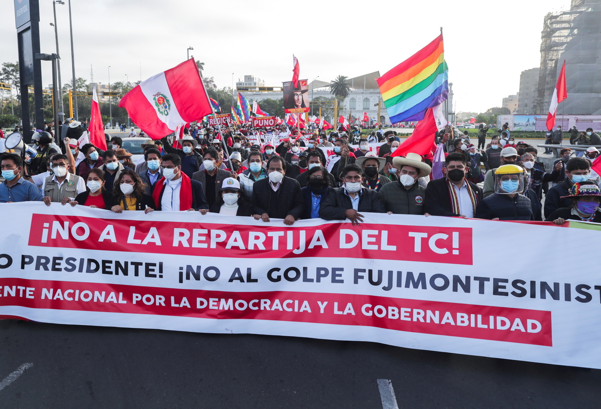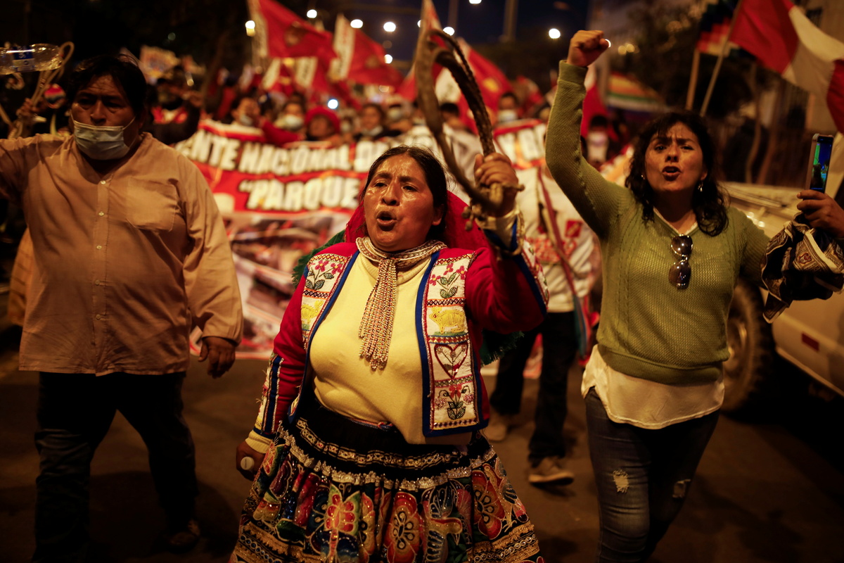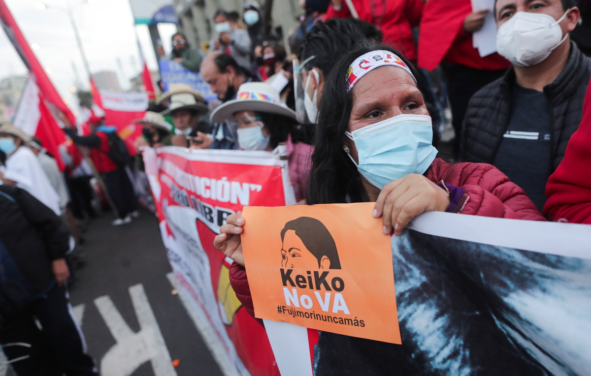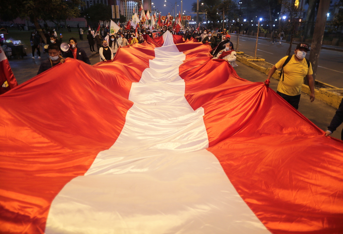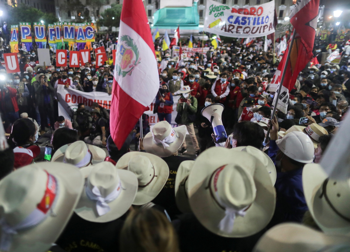 Thousands of Peruvians took to the streets on Tuesday to protest uncertainty over the result of the presidential election a month ago, as the confirmation of leftist Pedro Castillo is held up by ballot challenges from his conservative rival.