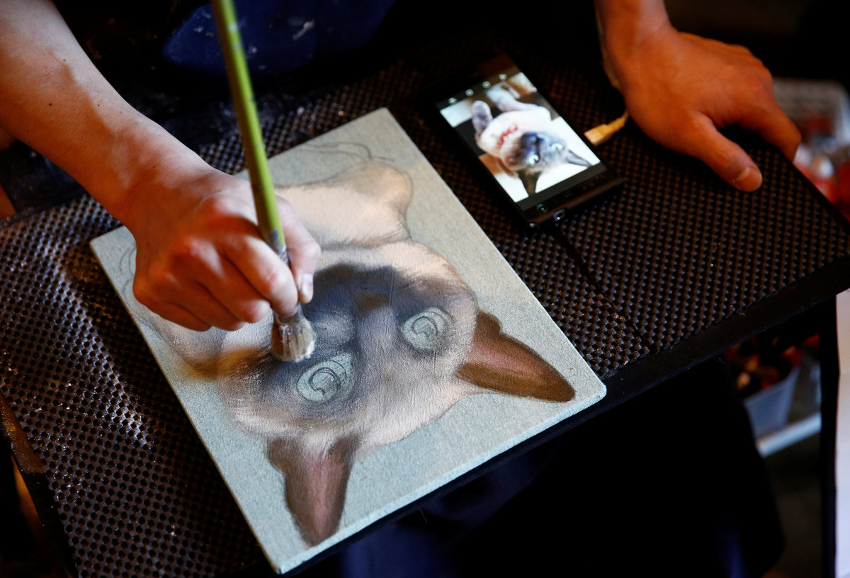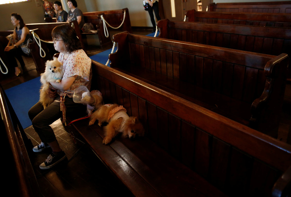 Visitors attend a demonstration of pet funeral services at the Pet Rainbow Festa, a pet funeral expo targeting an aging pet population, in Tokyo, Japan September 18, 2017. REUTERS/Kim Kyung-HoonA visitor with her pet dogs attend a demonstration of pet funeral services at the Pet Rainbow Festa, a pet funeral expo targeting an aging pet population, in Tokyo, Japan September 18, 2017. REUTERS/Kim Kyung-HoonA staff arranges an altar for a pet dog during a demonstration of pet funeral services at the Pet Rainbow Festa, a pet funeral expo targeting an aging pet population, in Tokyo, Japan September 18, 2017. REUTERS/Kim Kyung-HoonA painter paints a portrait of a pet cat at the Pet Rainbow Festa, a pet funeral expo targeting an aging pet population, in Tokyo, Japan September 18, 2017. REUTERS/Kim Kyung-Hoon Pet owners attend a pet yoga session at the Pet Rainbow Festa, a pet funeral expo targeting an aging pet population, in Tokyo, Japan September 18, 2017. REUTERS/Kim Kyung-HoonPet owners attend a pet yoga session at the Pet Rainbow Festa, a pet funeral expo targeting an aging pet population, in Tokyo, Japan September 18, 2017. REUTERS/Kim Kyung-HoonA man with a pet leaves a venue of the Pet Rainbow Festa, a pet funeral expo targeting an aging pet population, in Tokyo, Japan September 18, 2017. REUTERS/Kim Kyung-Hoon