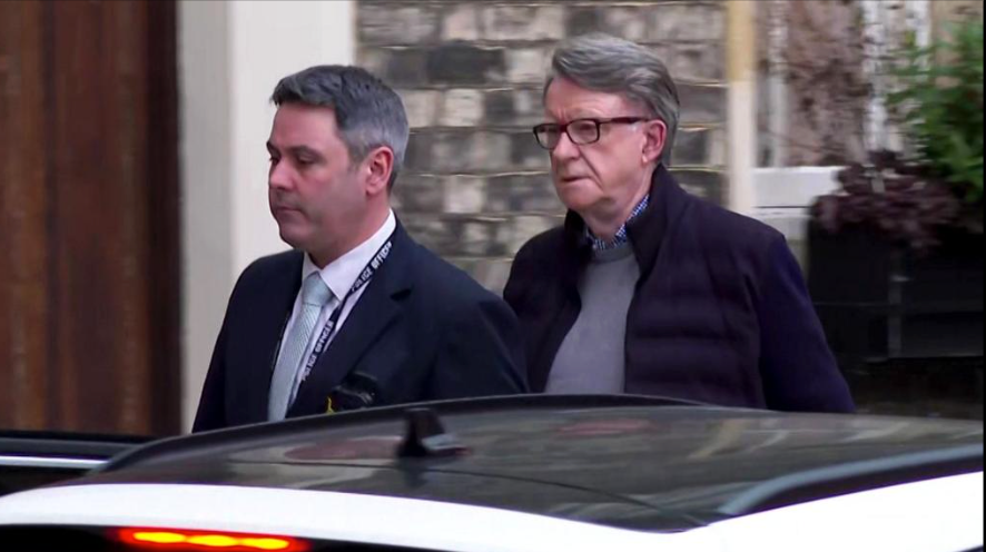 Footage showed Lord Mandelson being led out of his house by a plain clothes police officer on Monday and the Metropolitan Police later said the 72-year-old was taken to a London police station for interview.